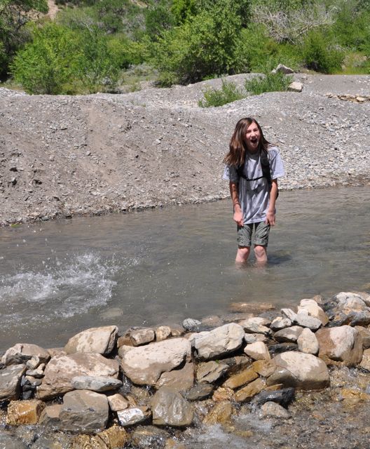 Today we headed to another of our favorite places. The spillway/overflow/reservoir where the snow melt comes right down from the mountains. I had told Maggie how much fun we have up there but today was the first time she tried it for herself. She called and said "this is great up here! It's like a little boys dream come true." I said "we're on our way"